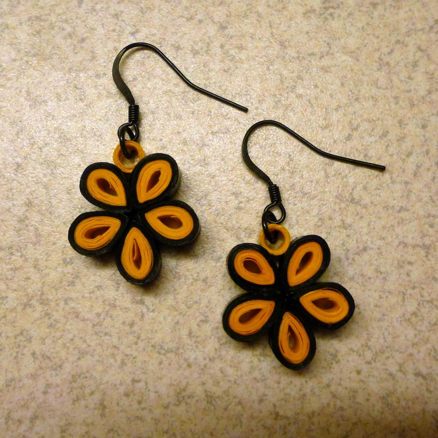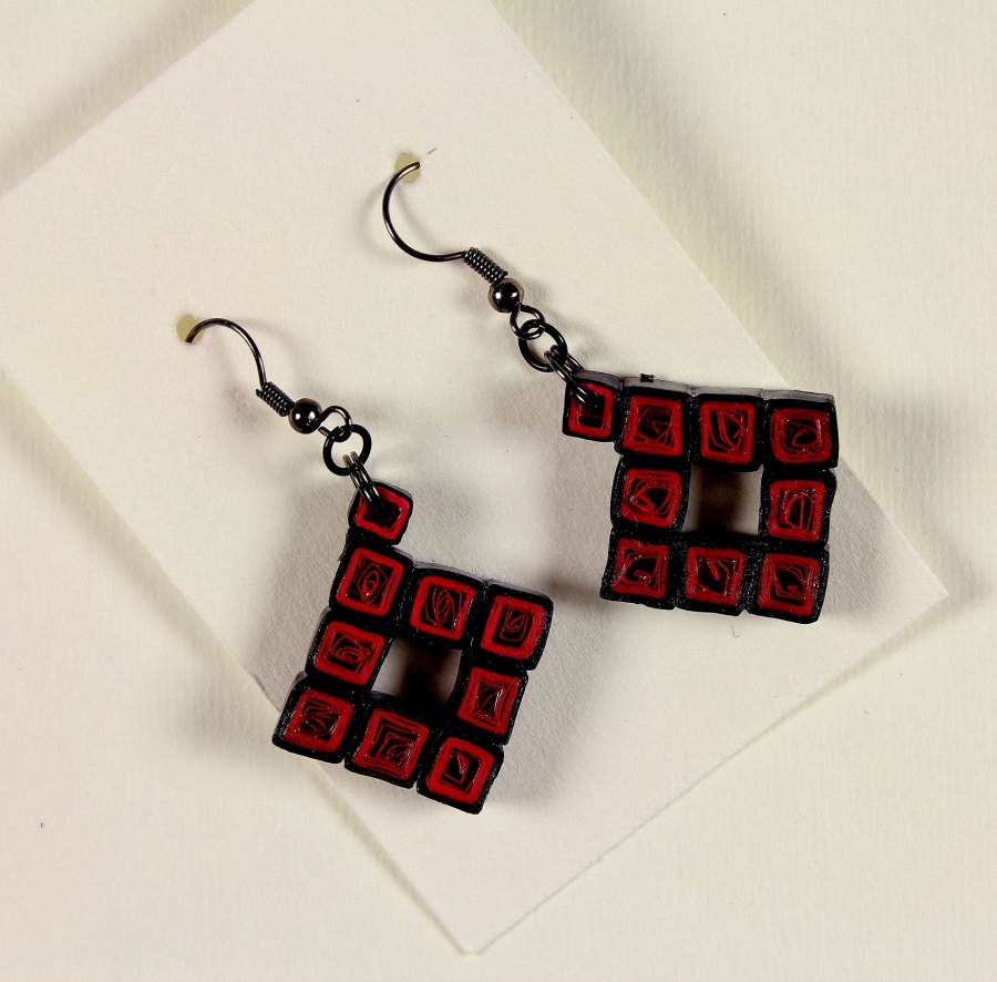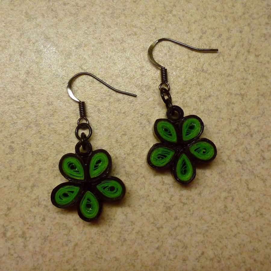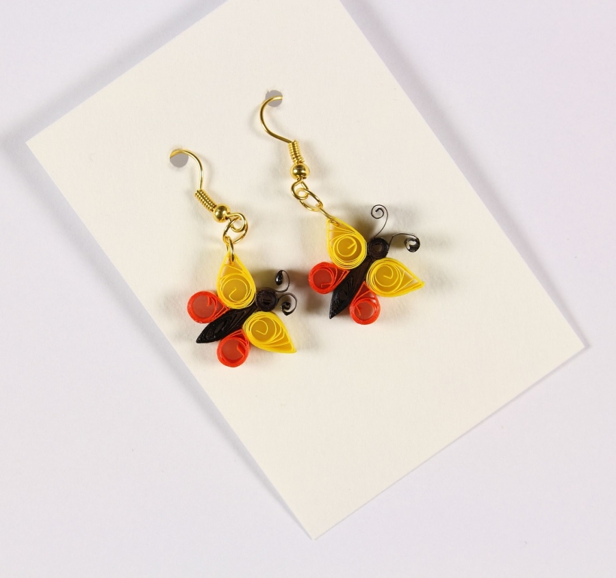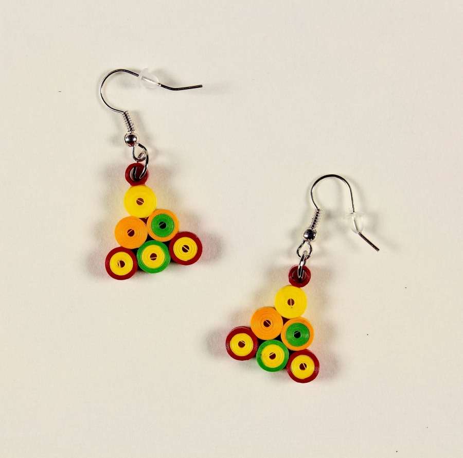 Náušnice jsou vyrobené z barevného papíru a jsou zalakované, aby byli odolnější.