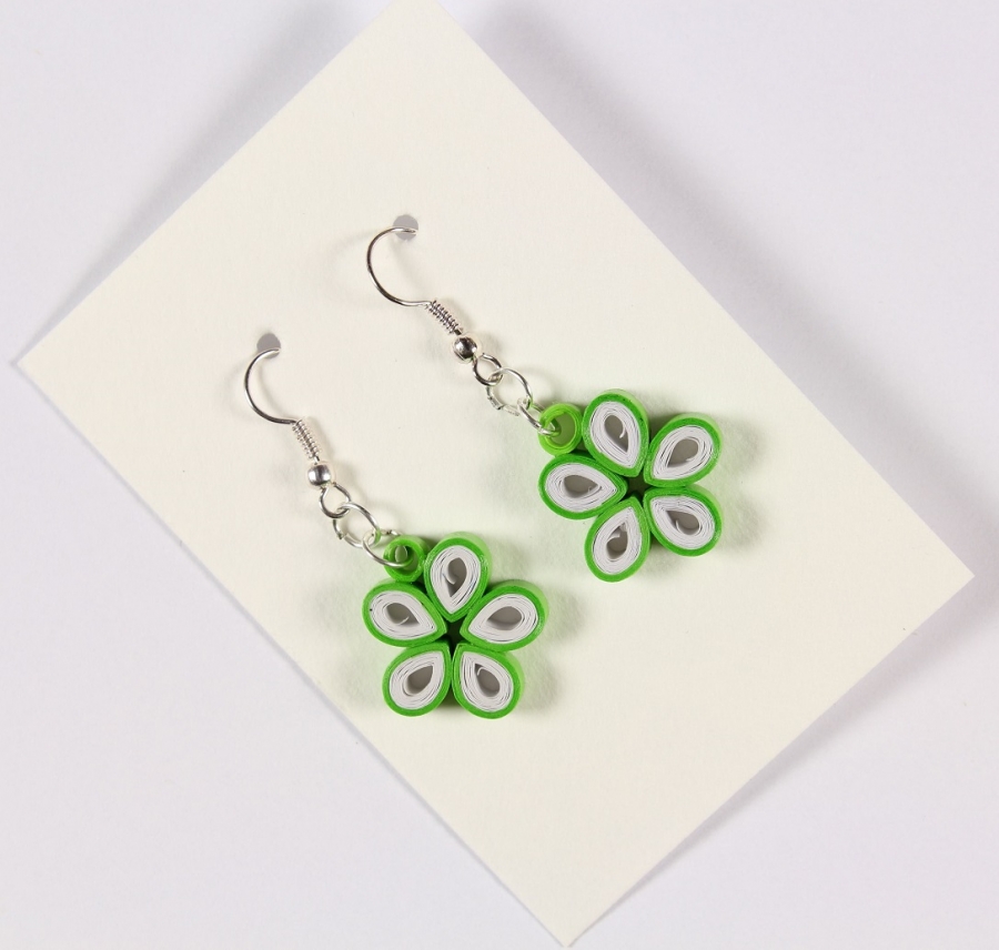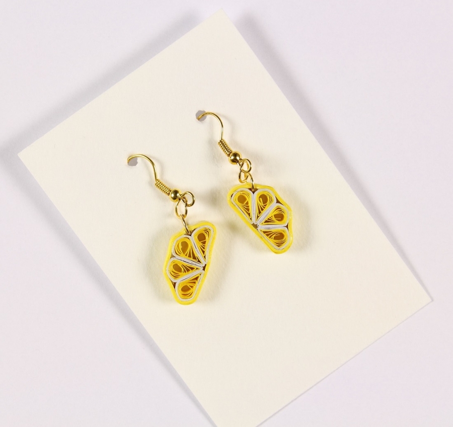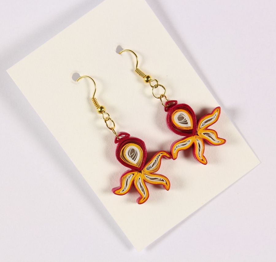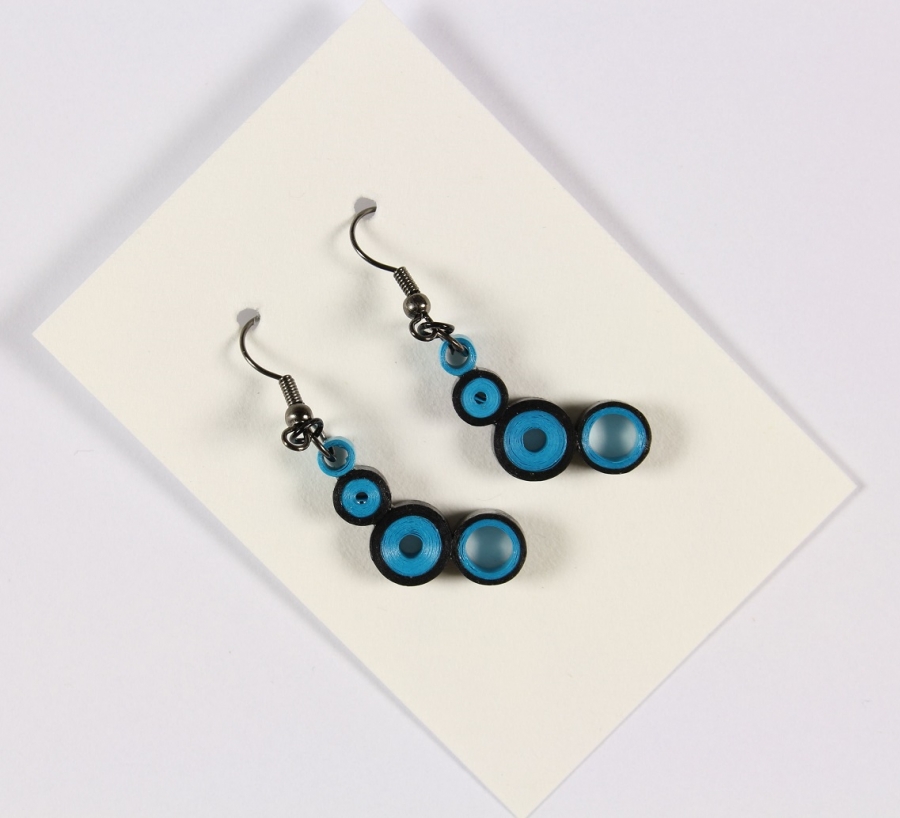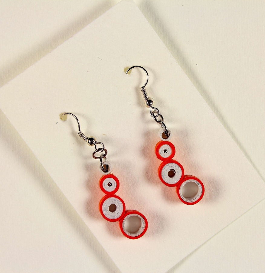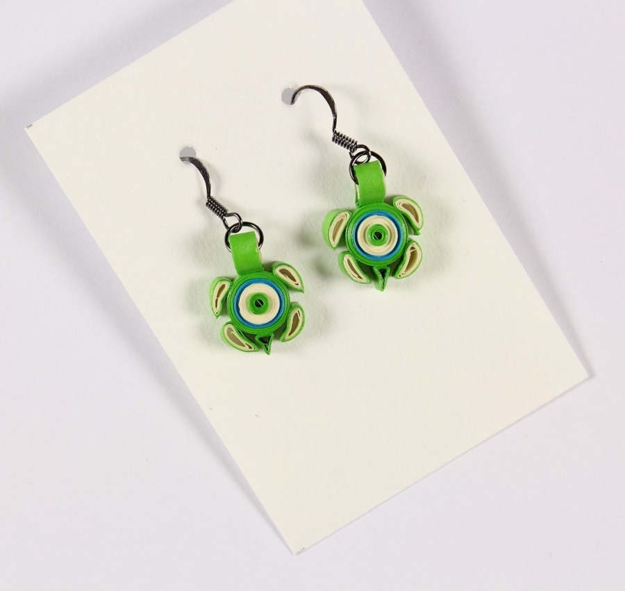 Náušnice jsou vyrobené z barevného papíru a jsou zalakované, aby byli odolnější.