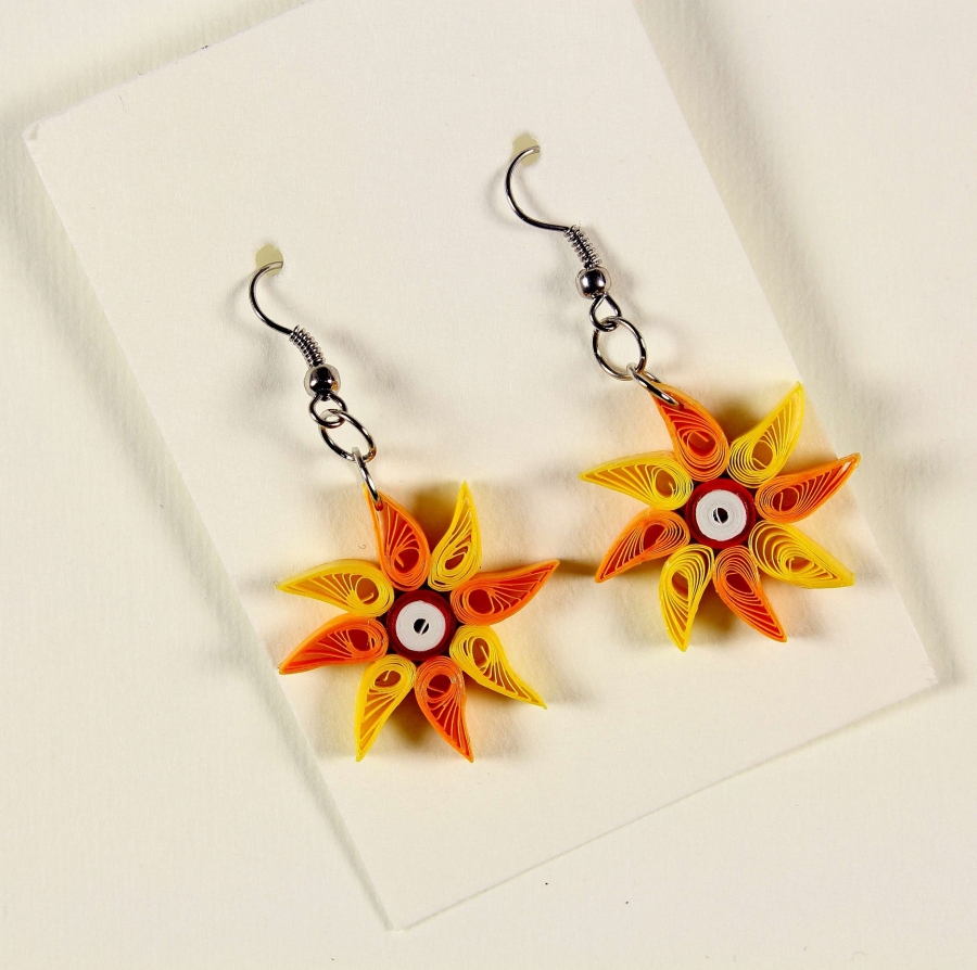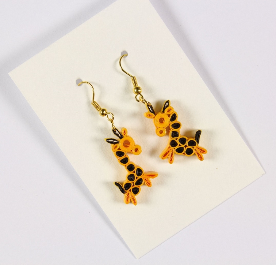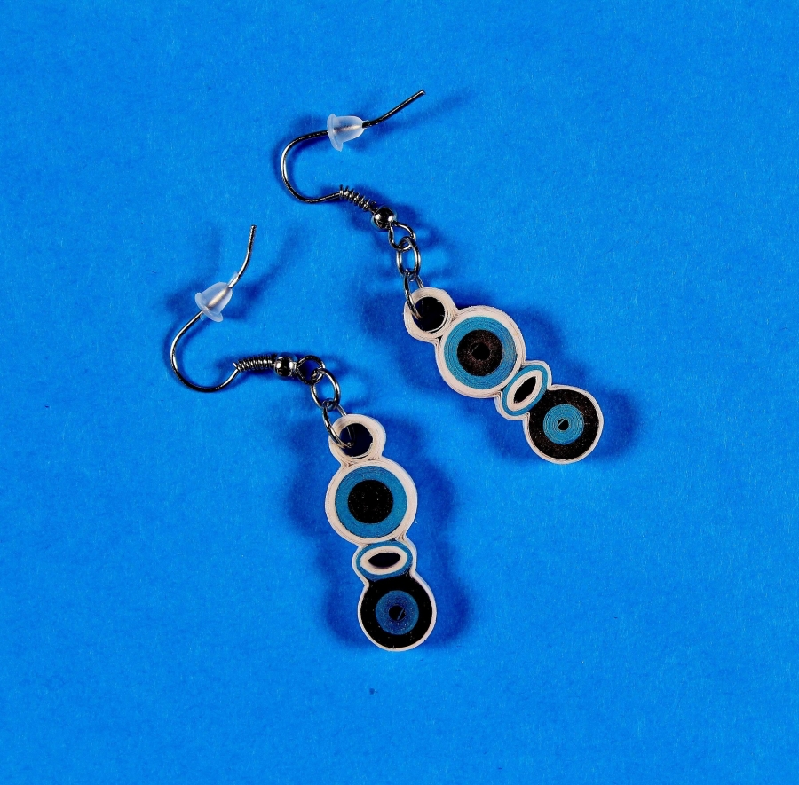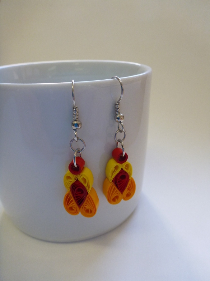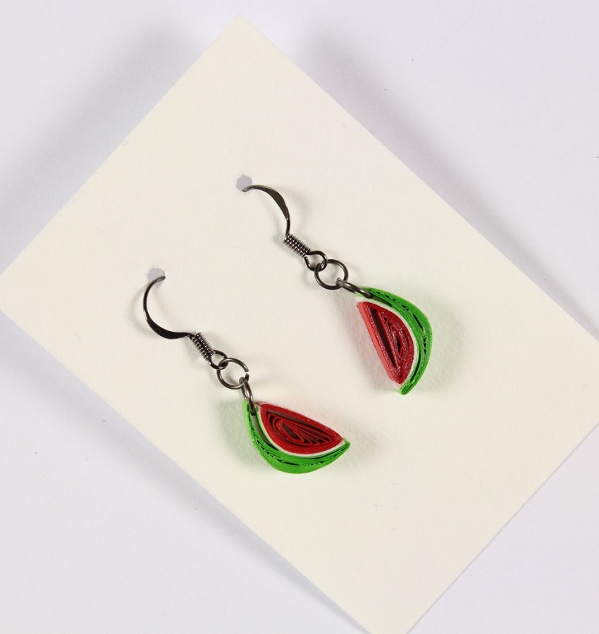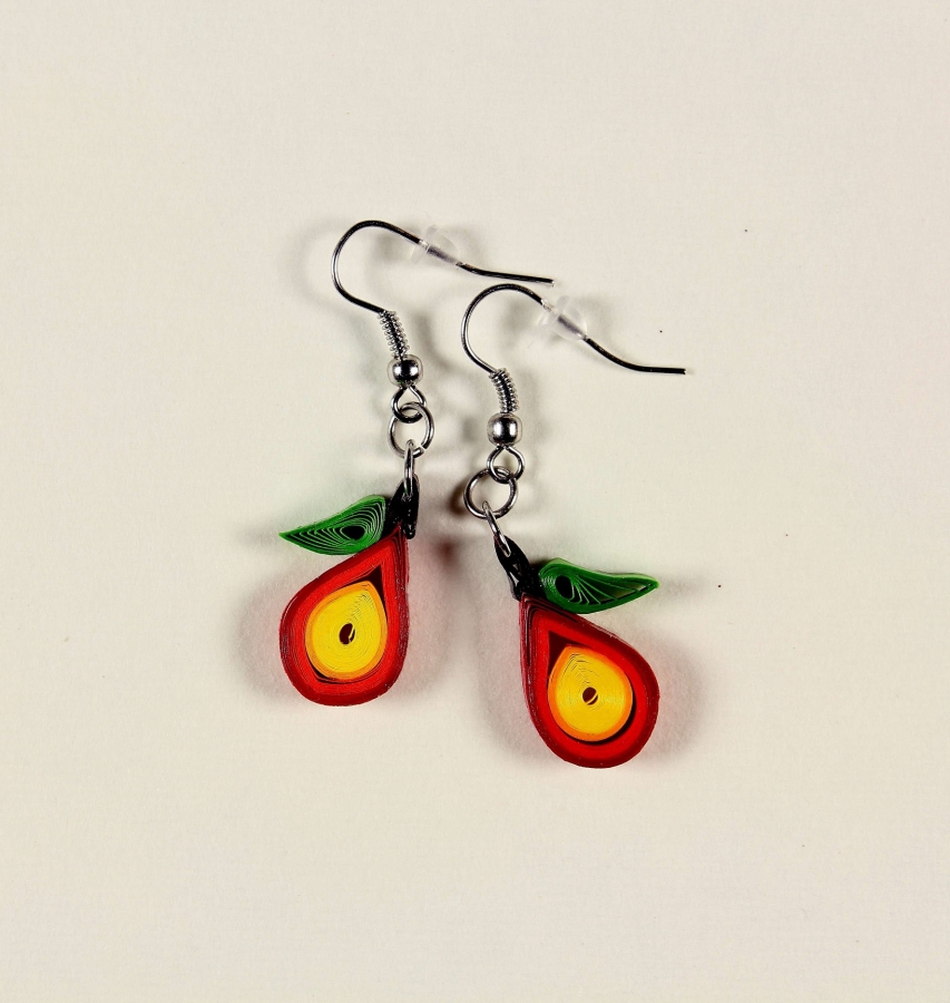 Náušnice jsou vyrobené z barevného papíru a jsou zalakované, aby byli odolnější.